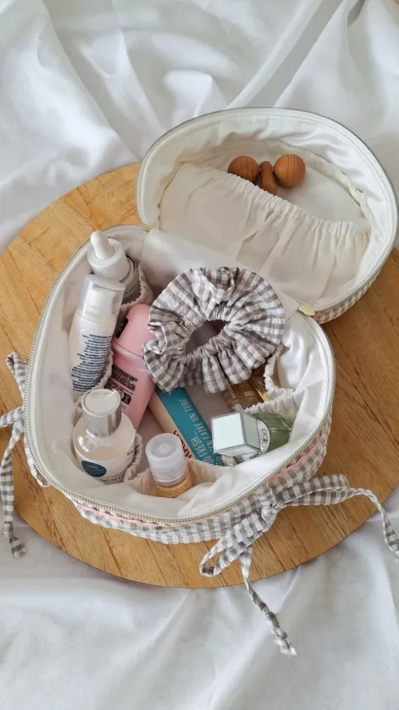Associé à ton vanity case rond avec nœud vintage, le scrunchie devient un petit détail raffiné qui rehausse ton look et crée une harmonie élégante avec tes accessoires.